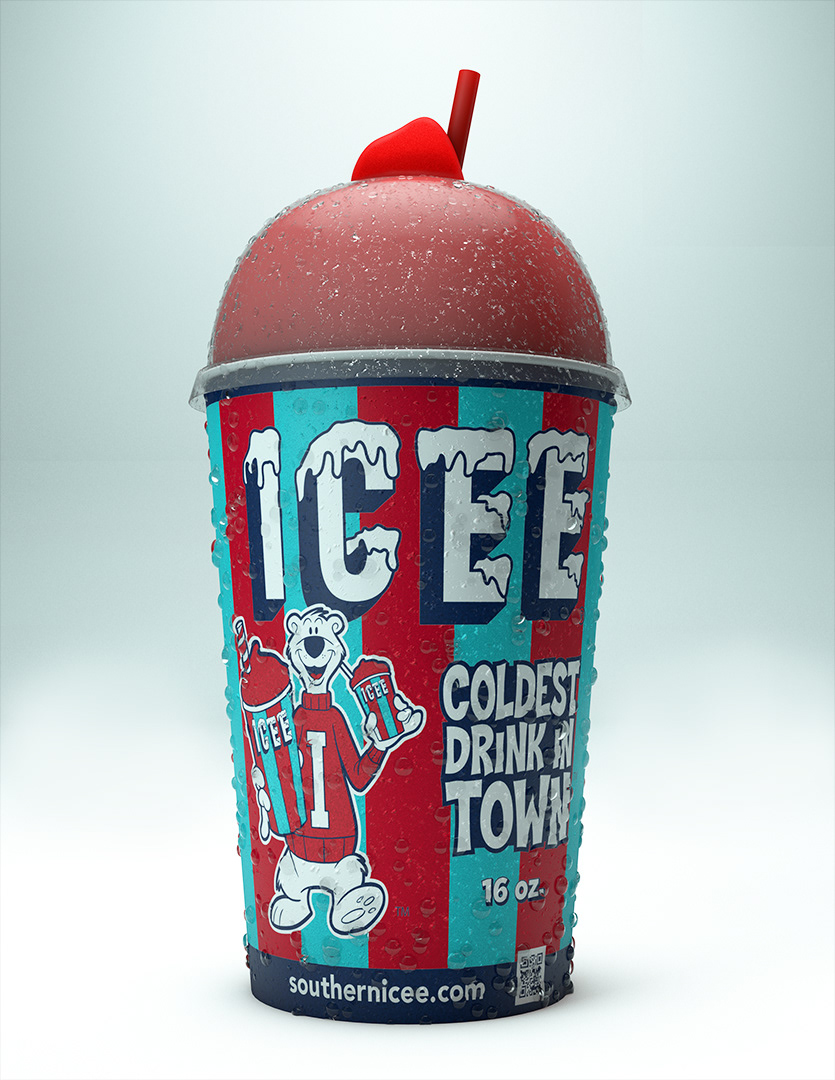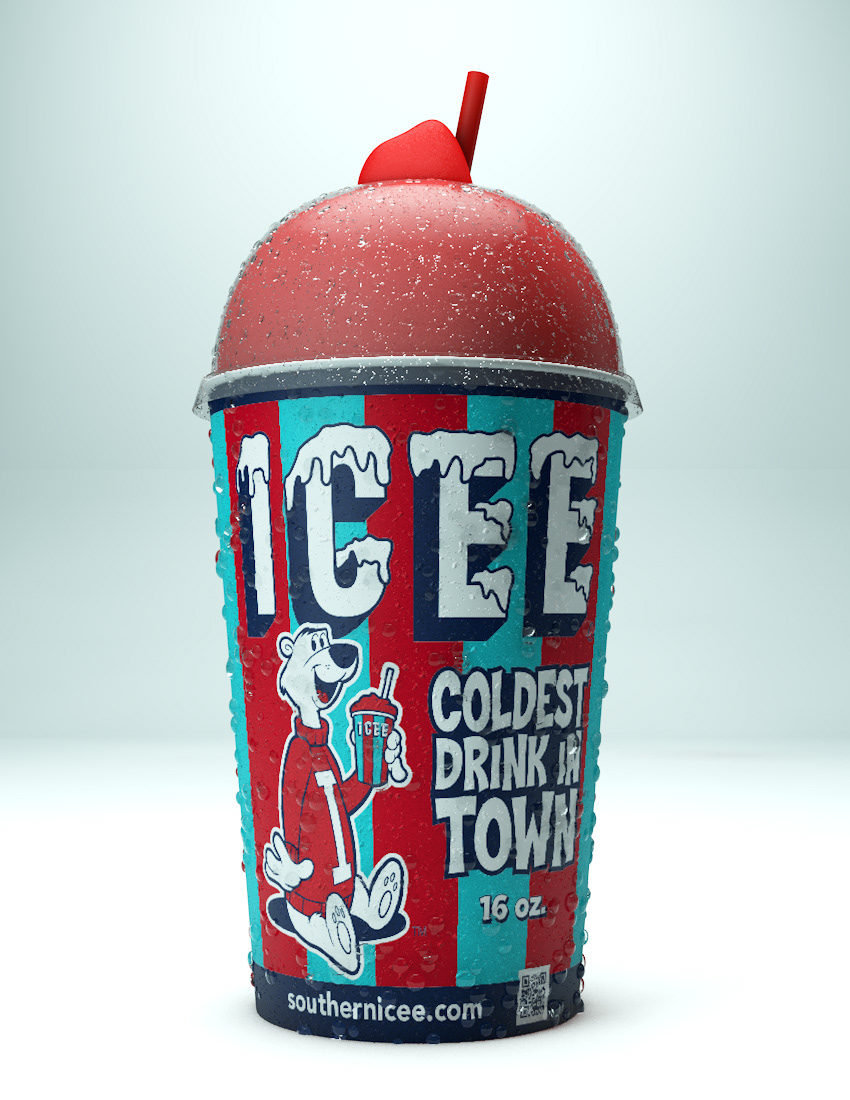 New ICEE Cup concept Art render for Southern ICEE. Cup built and rendered in Cinema 4D. I assume all computer graphics works including: modeling, texturing, lighting and rendering. Bear concept art work credits to Brad Campbell.